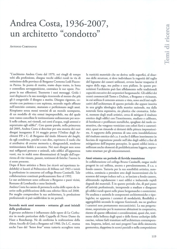 Andrea Costa, 1936-2007, un architetto “condotto”